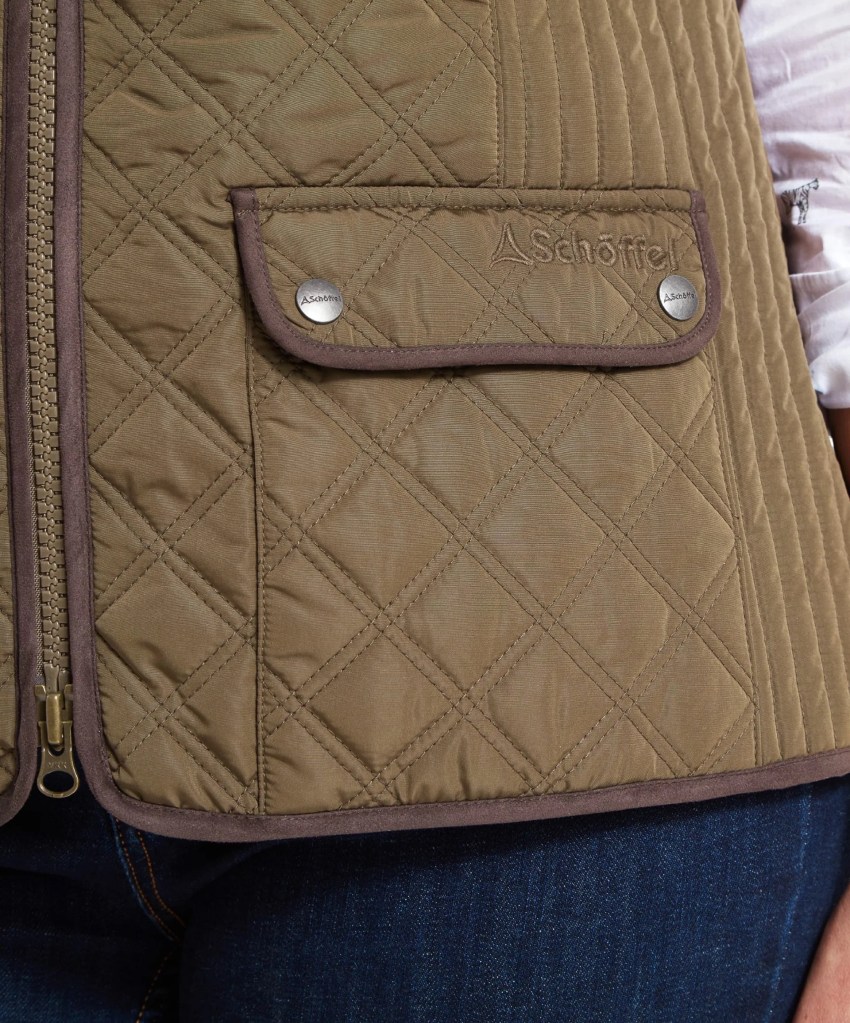 Helt ny quiltad väst från Schöffel. Som har en blandning av klassisk stil och praktiska egenskaper. Passar utmärkt som ytterplagg men också under en jacka/kappa. Går utmärkt att tvätta i maskin. Denna finns i storlekarna 10-22 och kostar 2699:-/st.