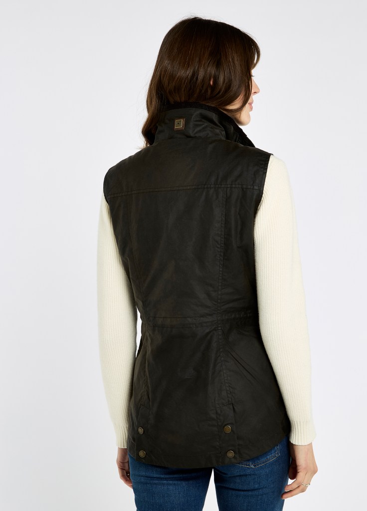 Vaxad väst i form av Dubarry Pakenham. Feminint skuren med dekorativa quiltade detaljer. Finns i ”Ginger” och ”Verdigris” i storlekarna 34-44 och kostar 2999:-/st.