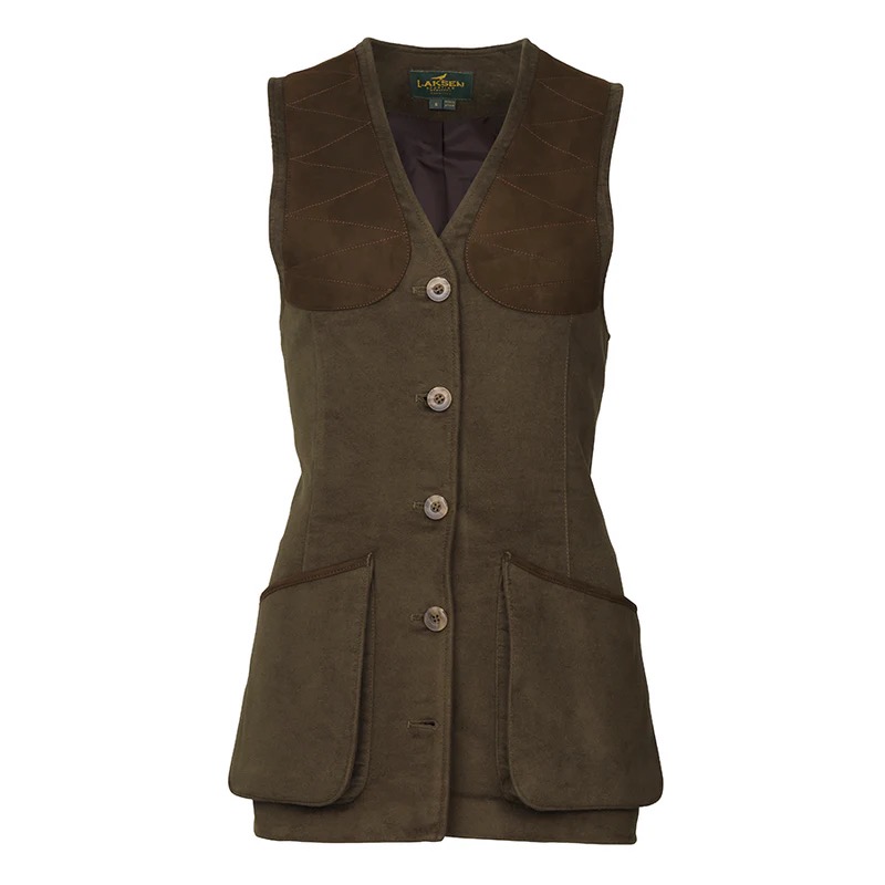 Traditionell skytteväst för kvinnor i mjukt och lätt italienskt mollskinn som kombinerar stil och funktionalitet. Finns i storlekarna 34-46. Kostar 3499:-/st.