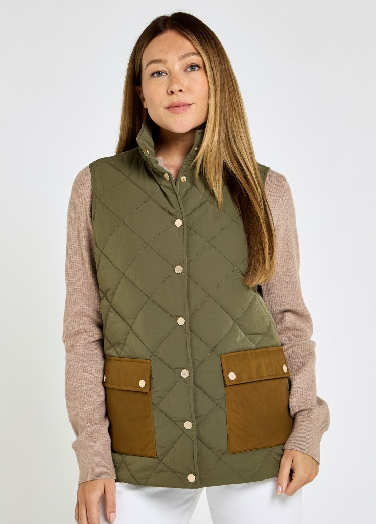 Quiltad väst i form av Dubarry Rathdown, finns i färgerna Olive och Currant. Västen är fleecefodrad och har två fickor i fronten/midjan, en bröstficka samt en innerficka med blixtlås. Finns i storlekarna 34-44 och kostar 1799:-/st.