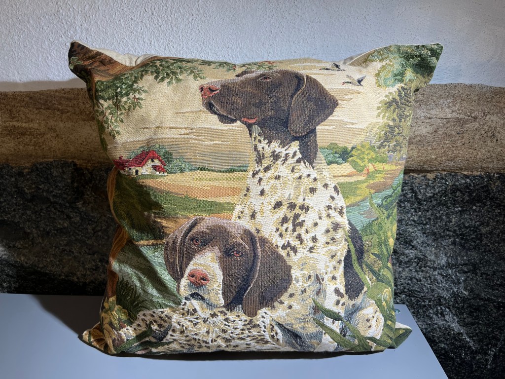 Vi har som bekant en hel del kuddar i butiken. Dessa är sydda i ett mycket exklusivt gobelängtyg. Fodral med blixtlås. Baksida i beige bomull. Innerkudde i syntet ingår. Kuddarna kostar 795:-/st (45 x 45), 795:-/st (25 x 95), 649:-/st (35 x 45) samt 495:-/st (25 x 45).