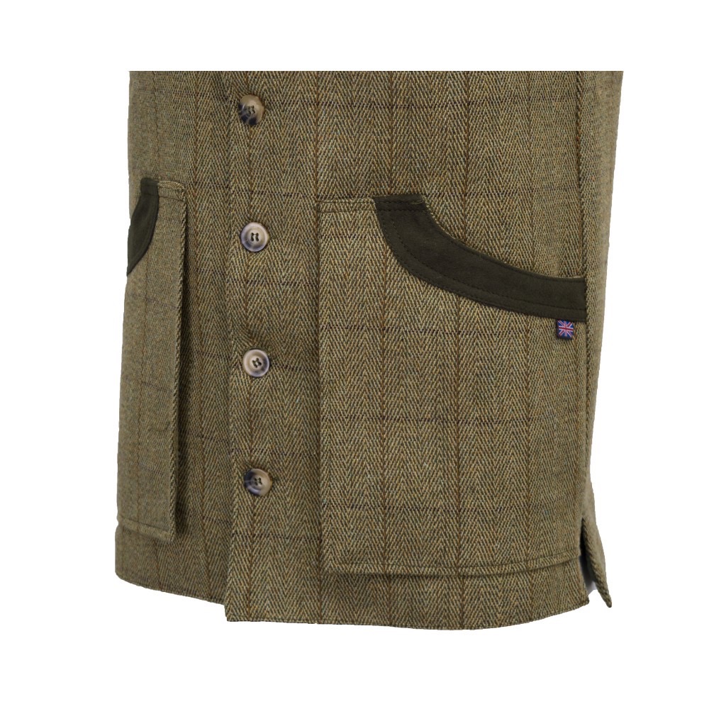 Tweedväst tillverkad i Storbritannien av Derby tweed med högsta kvalitet. Två fickor i fronten samt en innerficka med dragkedja. Västen är teflonbehandlad för att motverka smuts och fläckar. Finns i 3 olika färgkombinationer i storlekarna S-3XL och kostar 1695:-/st. Finns även matchande twedbreeks, tweedjacka och keps.