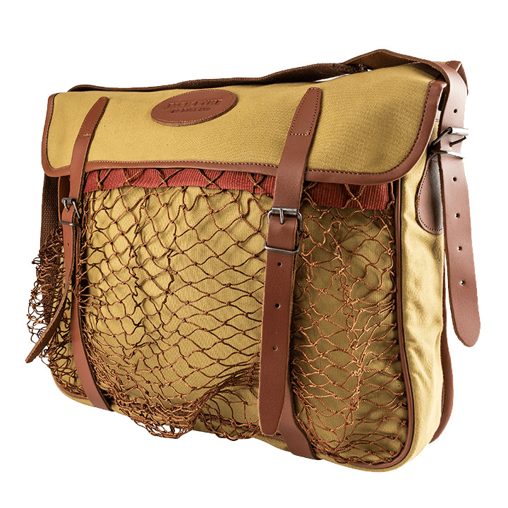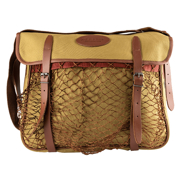 Detta är en riktigt snygga gamebag av en klassisk färg. Den har justerbar axelrem och ett utanpå liggande nät. Tillverkad av riktigt tålig canvas (bomull). Väskan har riktigt snygga detaljer av fuskläder. Insidan är givetvis tvättbar. Kostar 999:-/st.