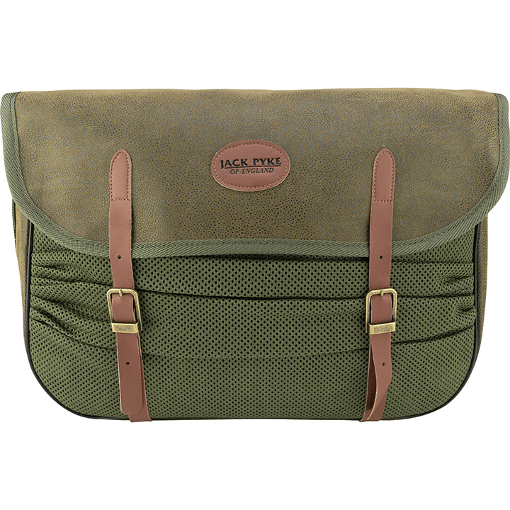 Jack Pyke Duotex Gamebag har ett avtorkbart och vattentåligt foder. Vilket gör den till ett utmärkt val för den som arbetar med hunden, jagar eller fiskar. Den främre nätfickan ger dig extra förvaringsutrymme och den har givetvis justerbar axelrem. Finns i två olika färger Olivgrön respektive brunt. Kostar 699:-/st.