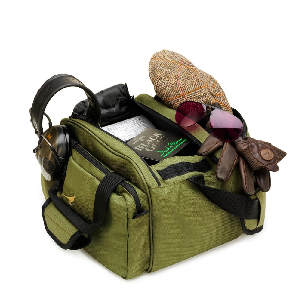 Cartridge & Co Peg bag är en slitstark och vattentät jaktväska, perfekt för en heldagsjakt eller på skjutbanan. Kan innehålla 250+ patroner, och är idealisk för förvaring av hörselskydd, handskar, skjutglasögon och andra tillbehör. Toppen är förstärkt med dubbel dragkedja och kardborrestängning. Har två ytterfickor och tre innerfickor. Med halkfri PU-belagd bärrem med dyna. Kostar 699:-/st.