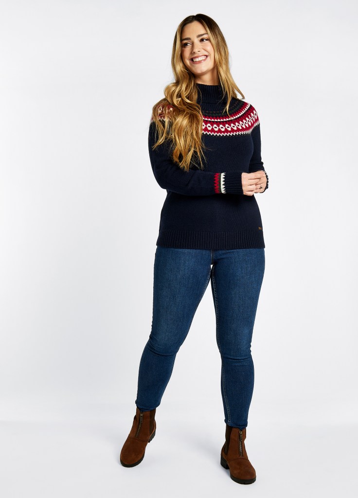 En charmig och traditionell tröja. Med vackert jacquardstickat Fair-Isle mönster. Med mysig vikbar ribbkrage. Tillverkad i en mix av ull, nylon och rayon. Finns i storlekarna S-2XL samt i tre olika färgkombinationer och kostar 1599:-/st.